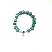 Cross Charm Bracelet- Antique Sea Blue