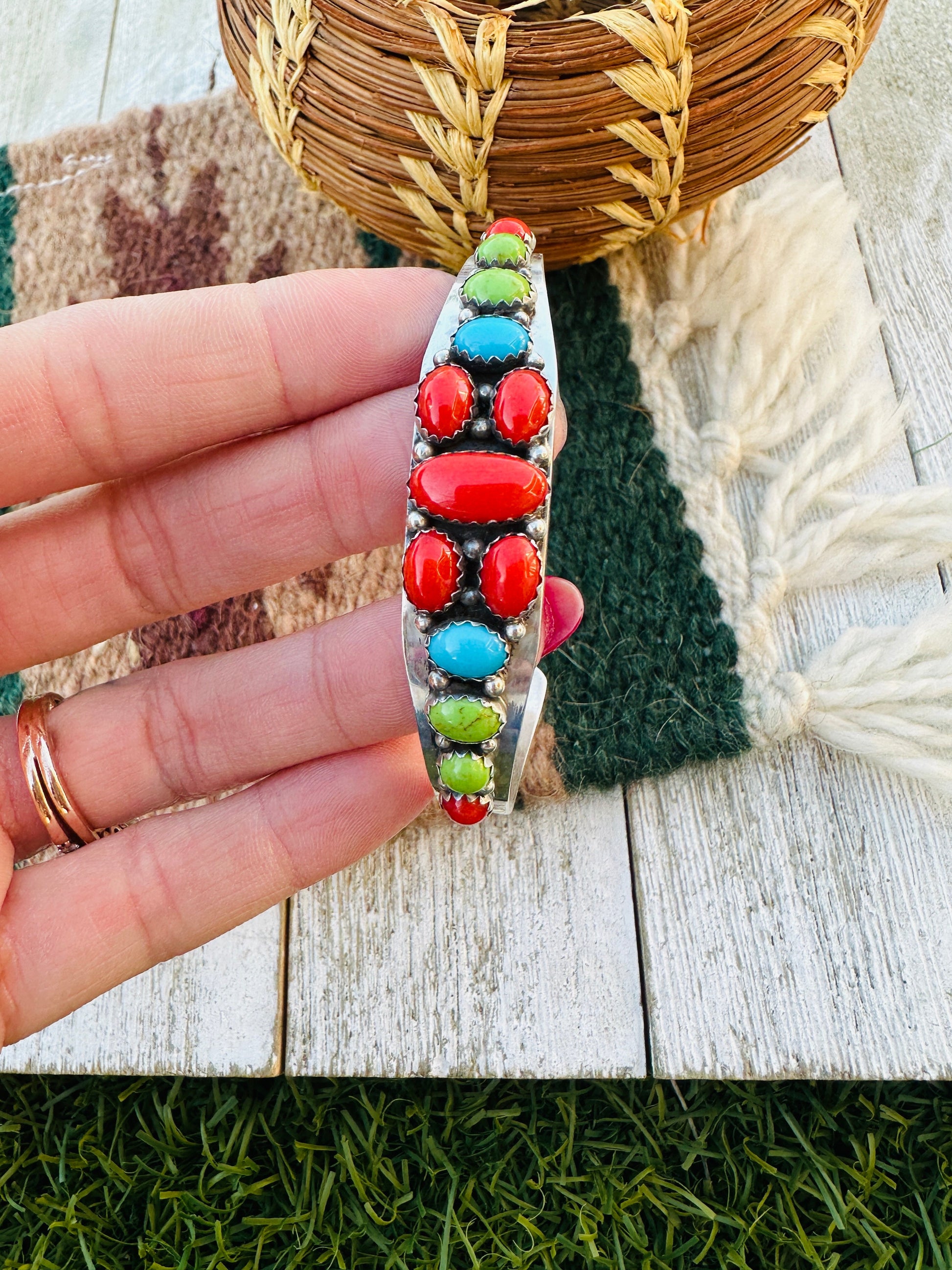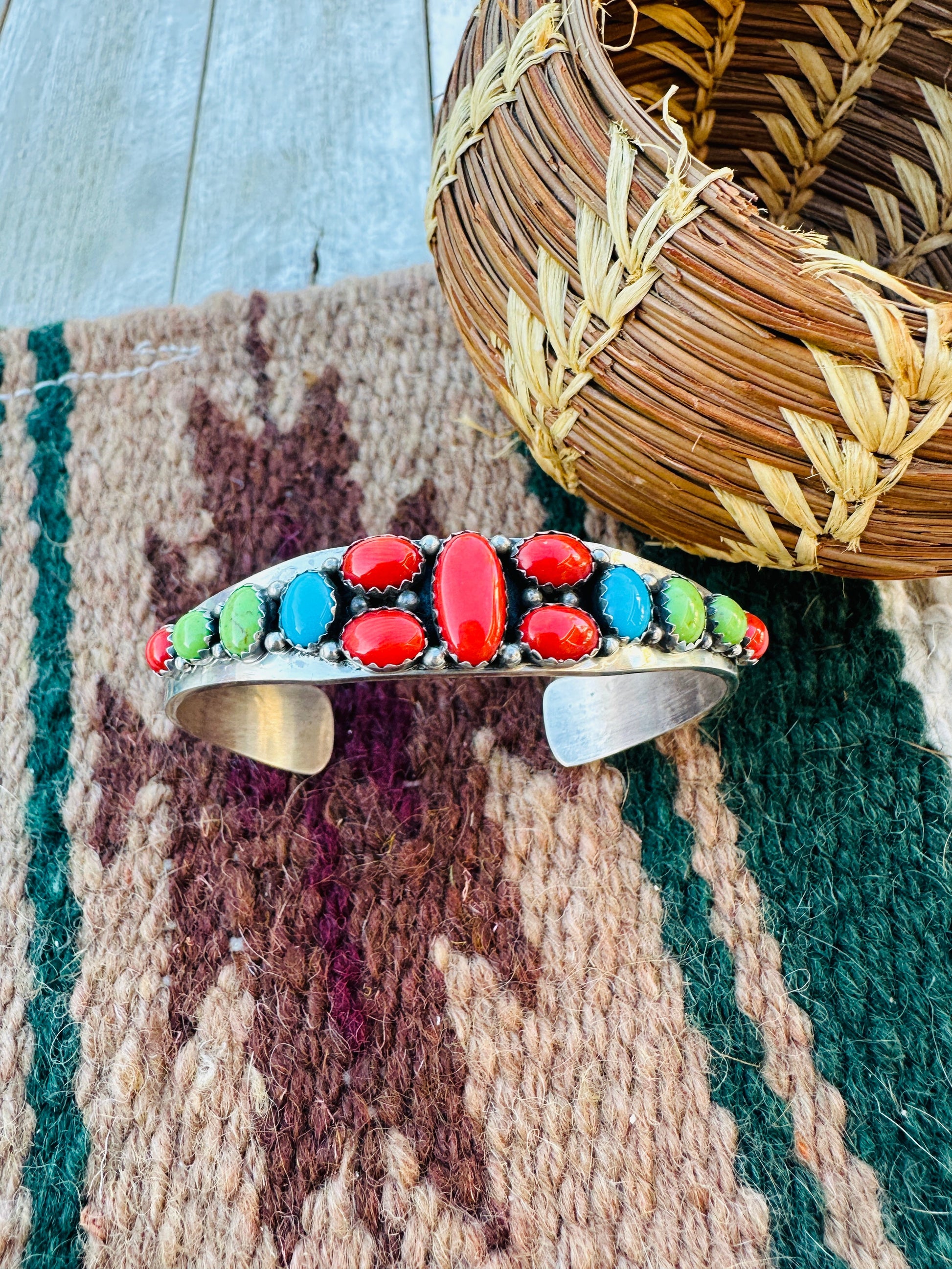 Handcrafted Old Pawn Sterling Silver & Multi Stone Cuff Bracelet by Daniel Mike