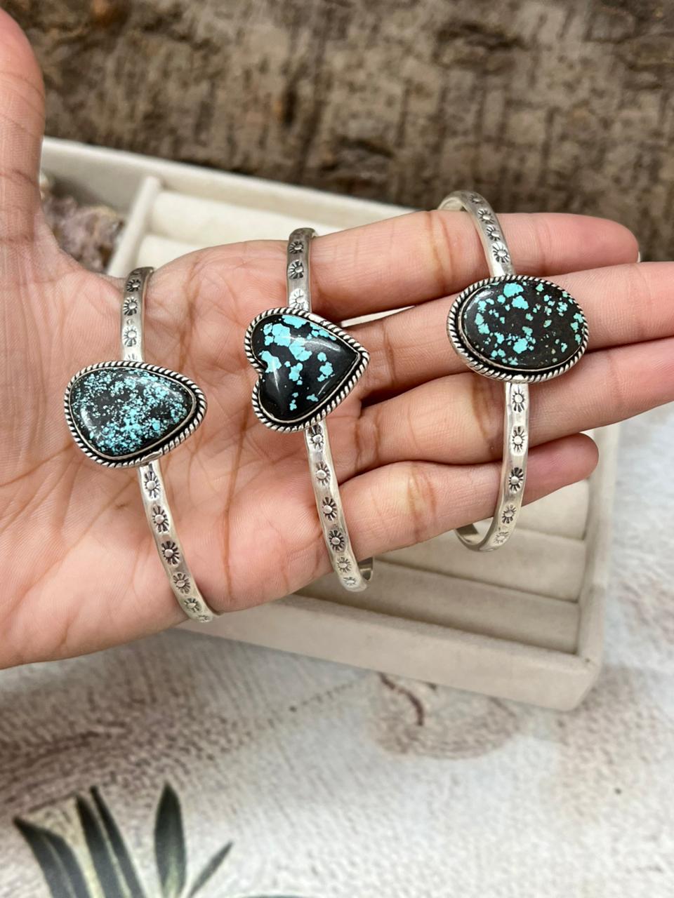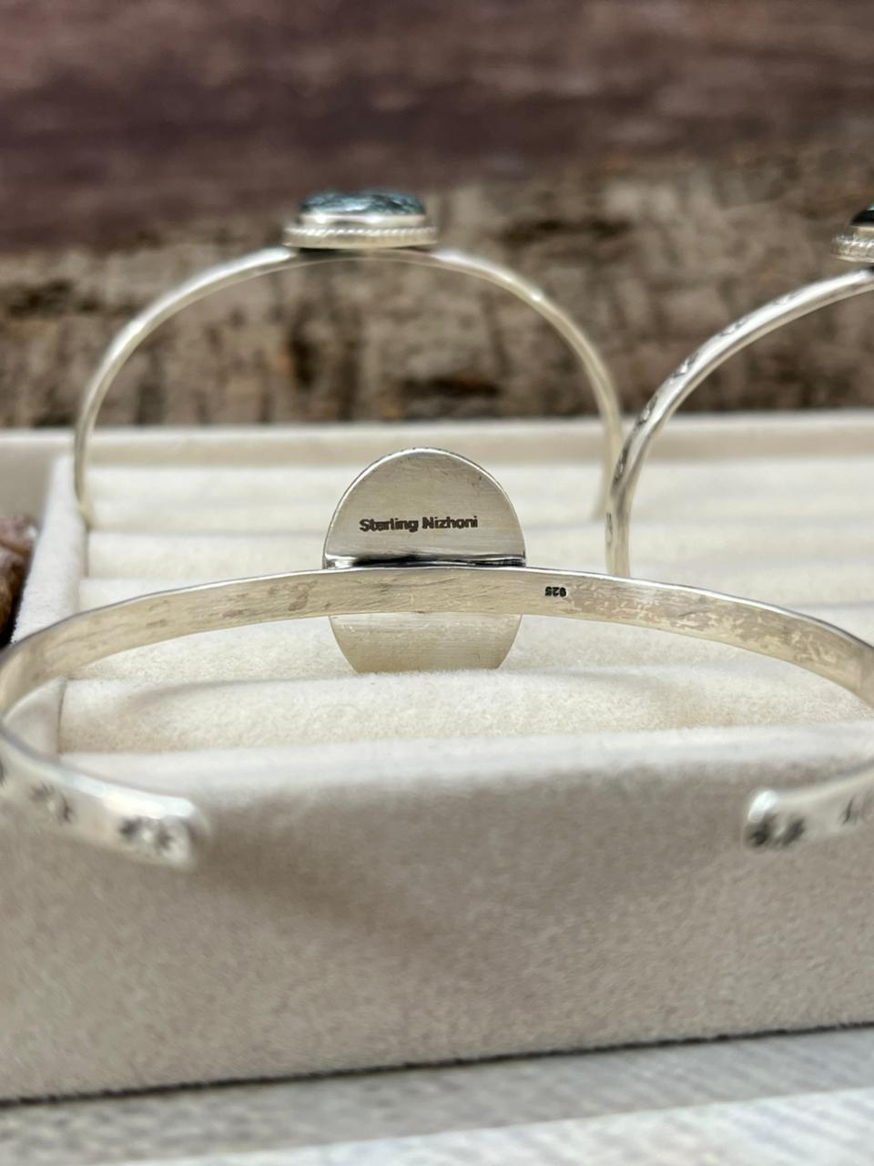 Handmade Sterling Silver Lander Turquoise Cuff Bracelet with Signed Nizhoni