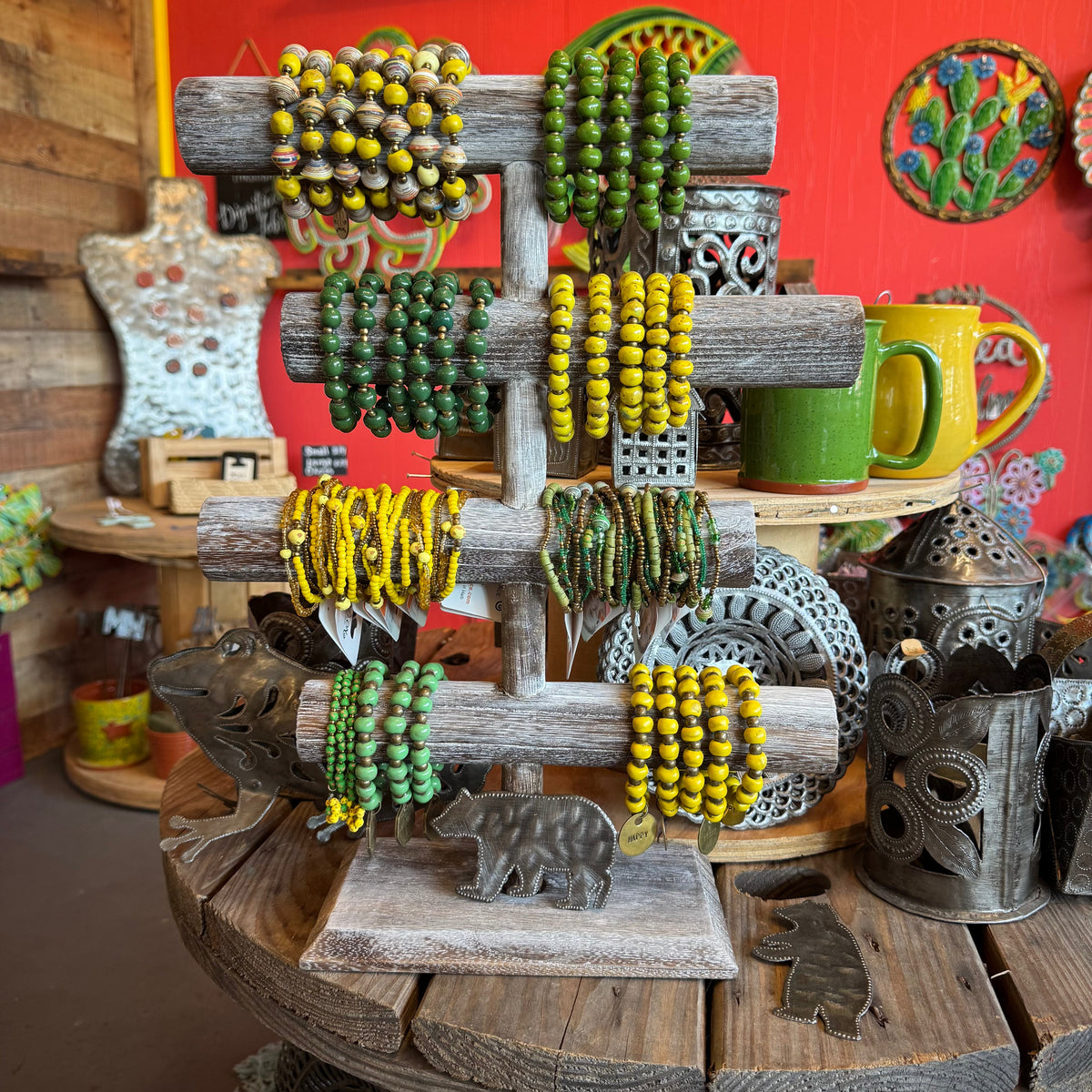 40 assorted handmade bracelets in your college colors. Comes loaded on the countertop display stand!