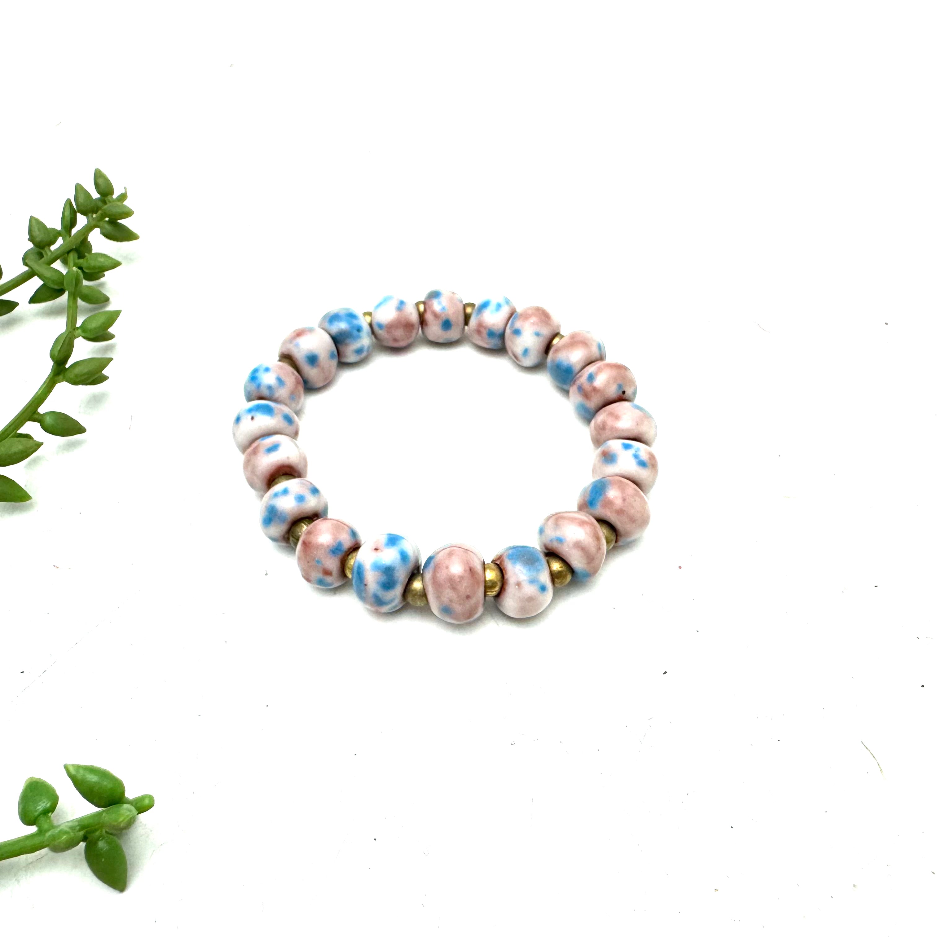 Gorgeous new colors on a classic piece! Made with handmade ceramic bead. 7” on stretchy cord.