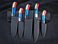 Each blade is forged from premium carbon steel—razor-sharp, tough, and built to handle everything from summer grilling to holiday feasts. With an ergonomic Texas flag handle available in bone, pakkawood, or steel bolster styles, these knives deliver comfort, durability, and a bold touch of American pride.