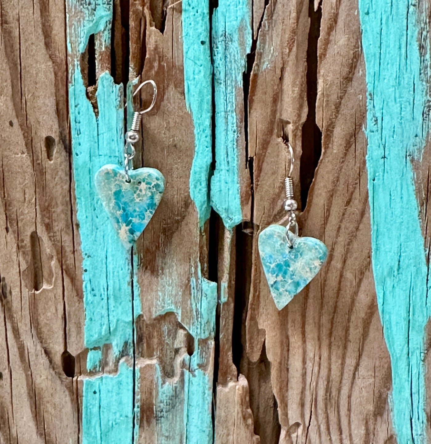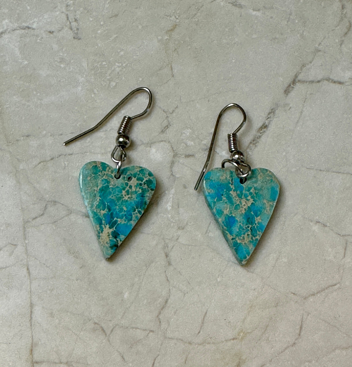 Gorgeous Blue Indigo Turquoise & Sterling Silver Slab Heart Dangle Earrings. These beauties measure 1 1/2 inches long and almost 5/8 inch wide.