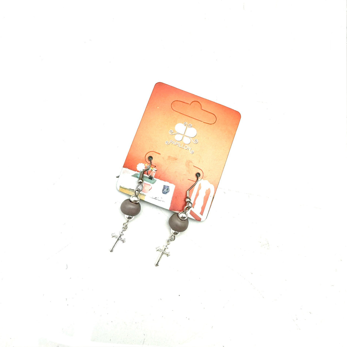 Inform when this item available Cross Charm Earring- Taupe