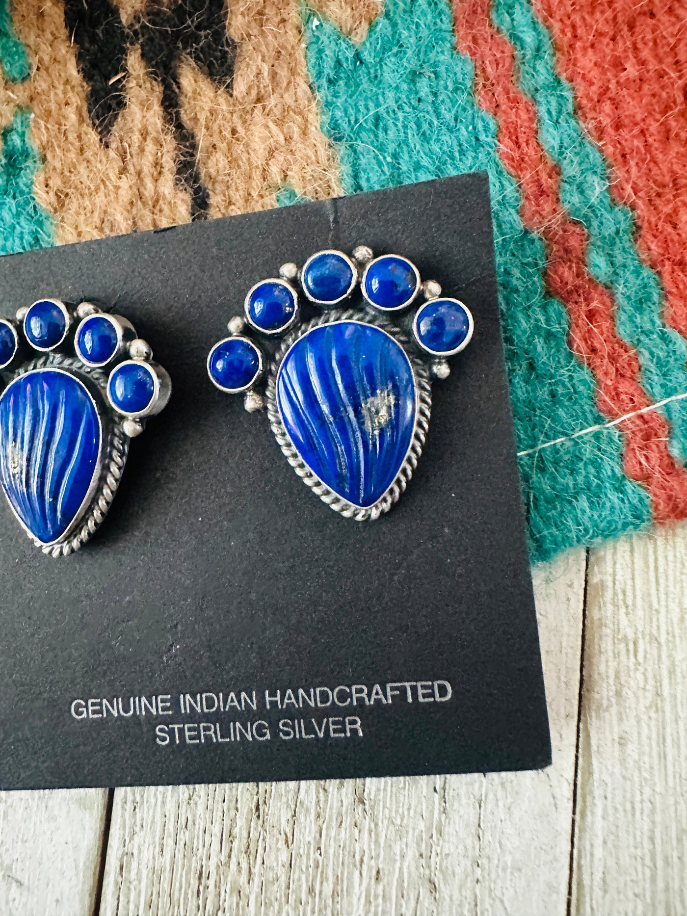 Beautiful Old Pawn Handcrafted Lapis and Sterling Silver Clip On Earrings. These measure 1 1/8 inches long and 1 inch wide. Stamped Sterling and signed by the artist.
