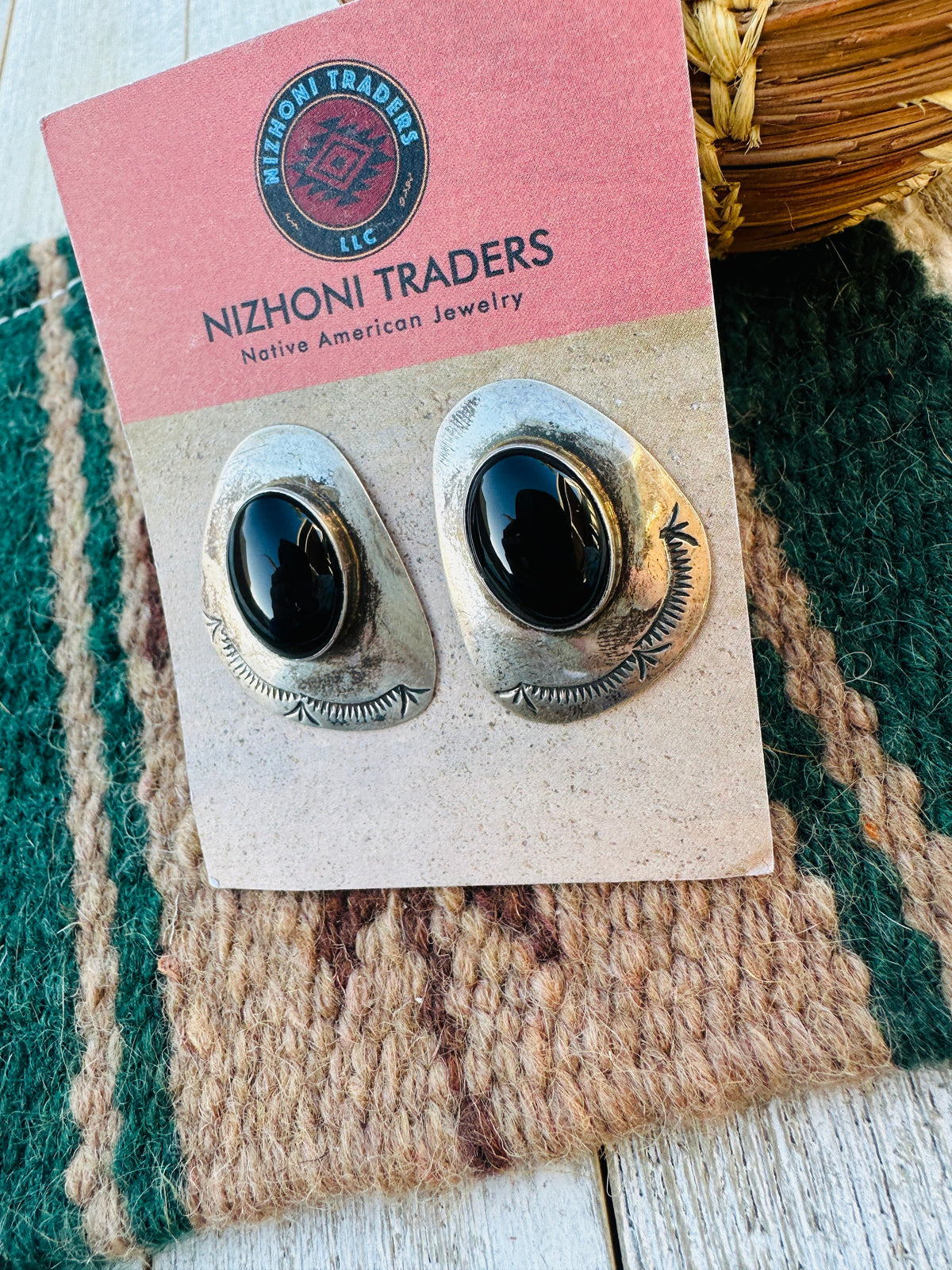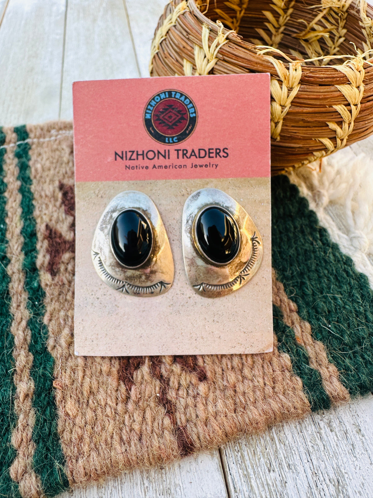 Handcrafted Old Pawn Sterling Silver & Onyx Post Earrings