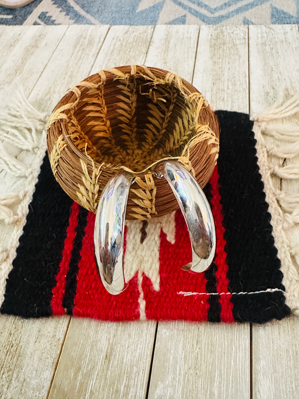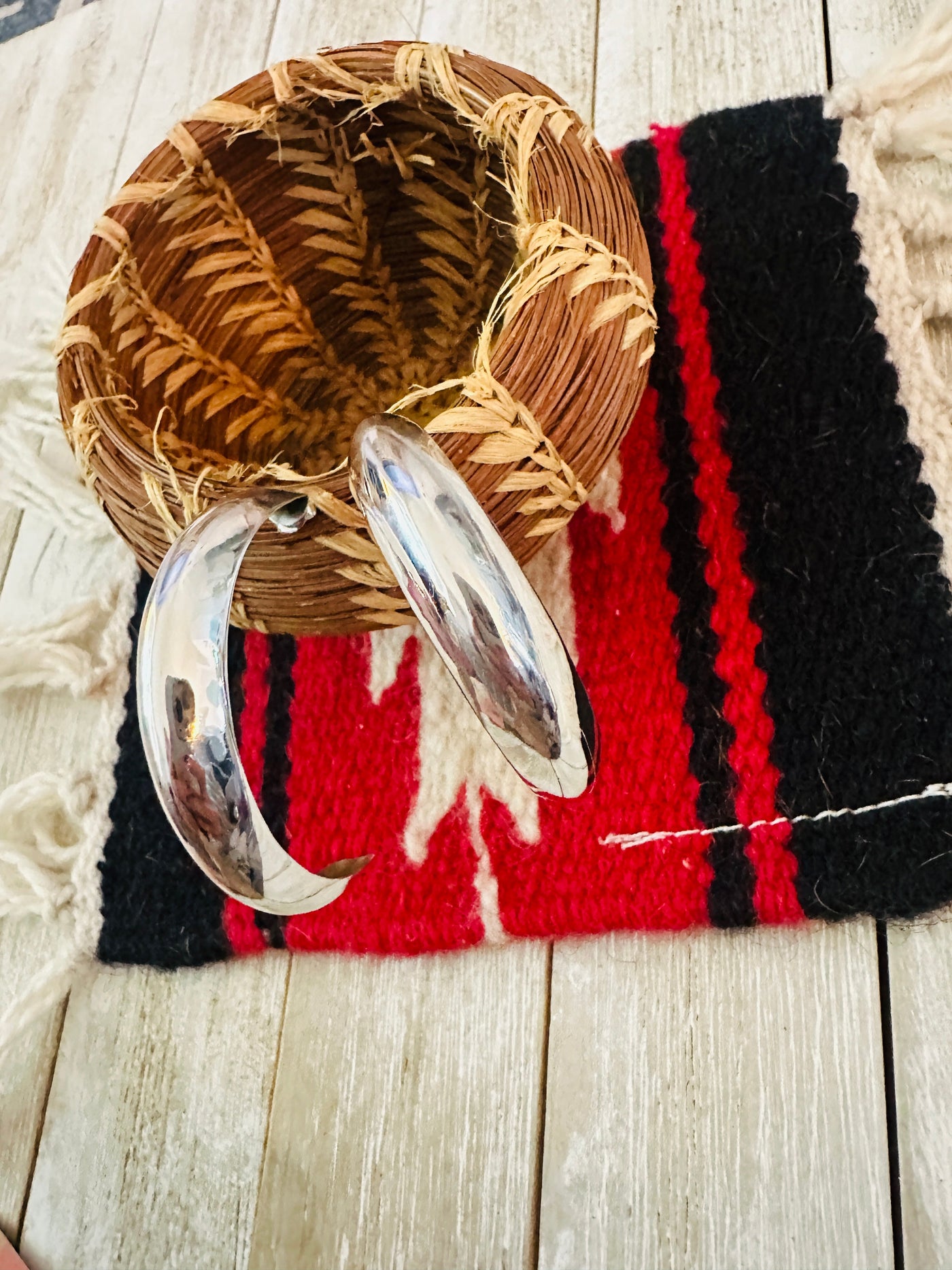 Beautiful Handcrafted Sterling Silver Hoop Earrings. These measure 2 inches long and 1/2 of an inch wide. Stamped Sterling.