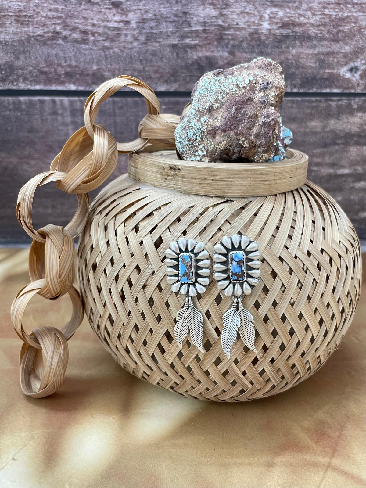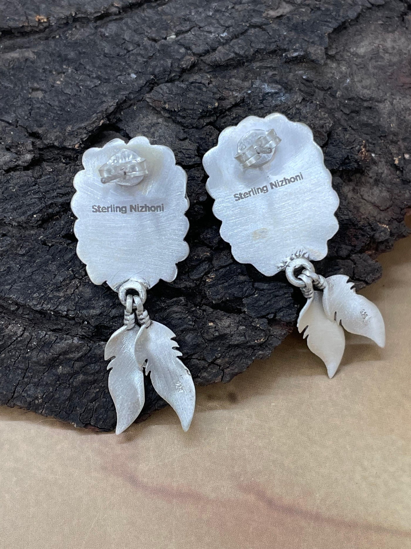 Handmade Sterling Silver Golden Hills Turquoise Post Dangle Earrings with Signed Nizhoni - Golden Hills Turquoise / Dangle