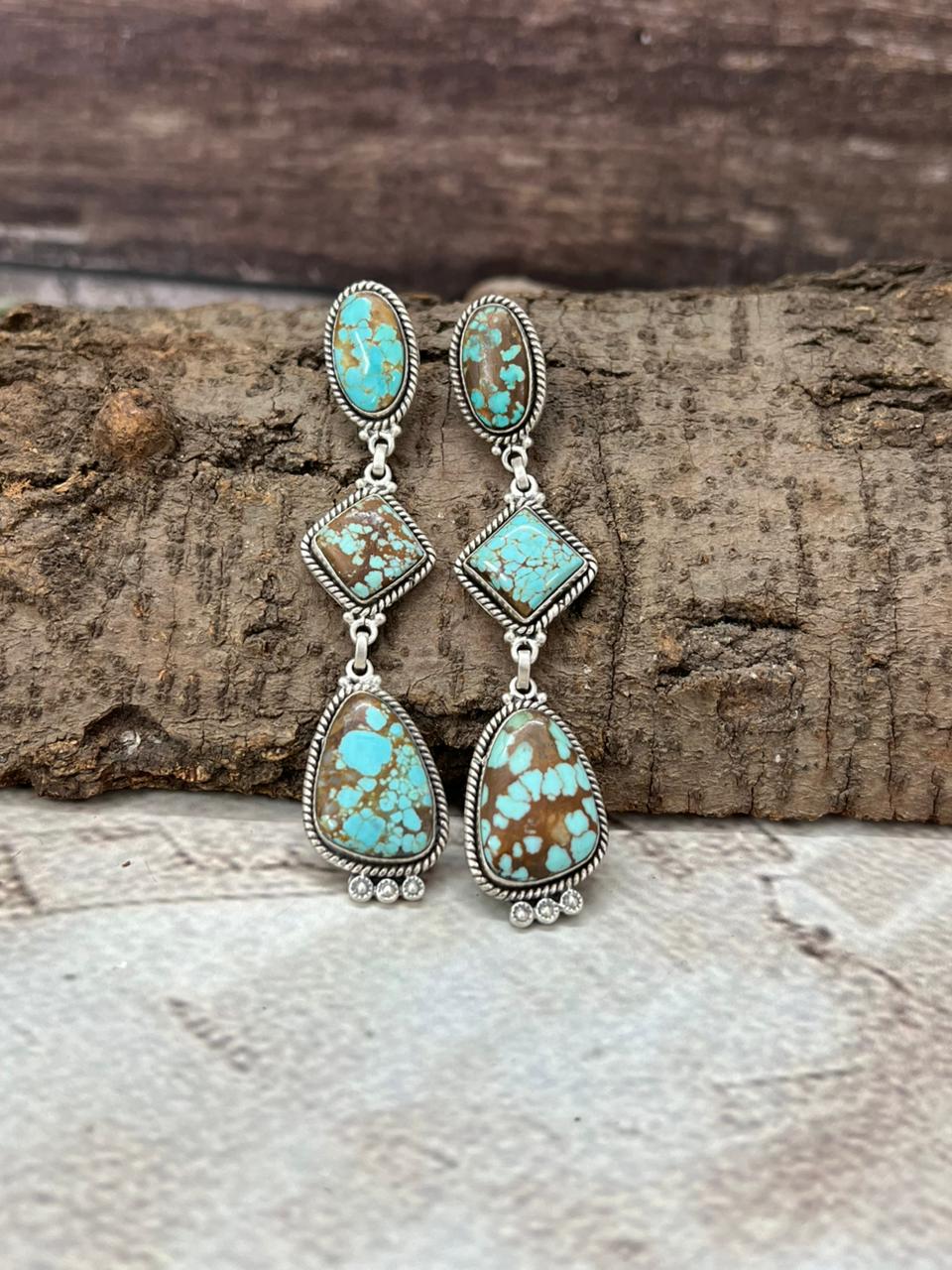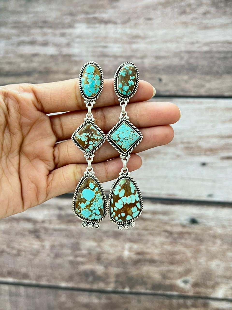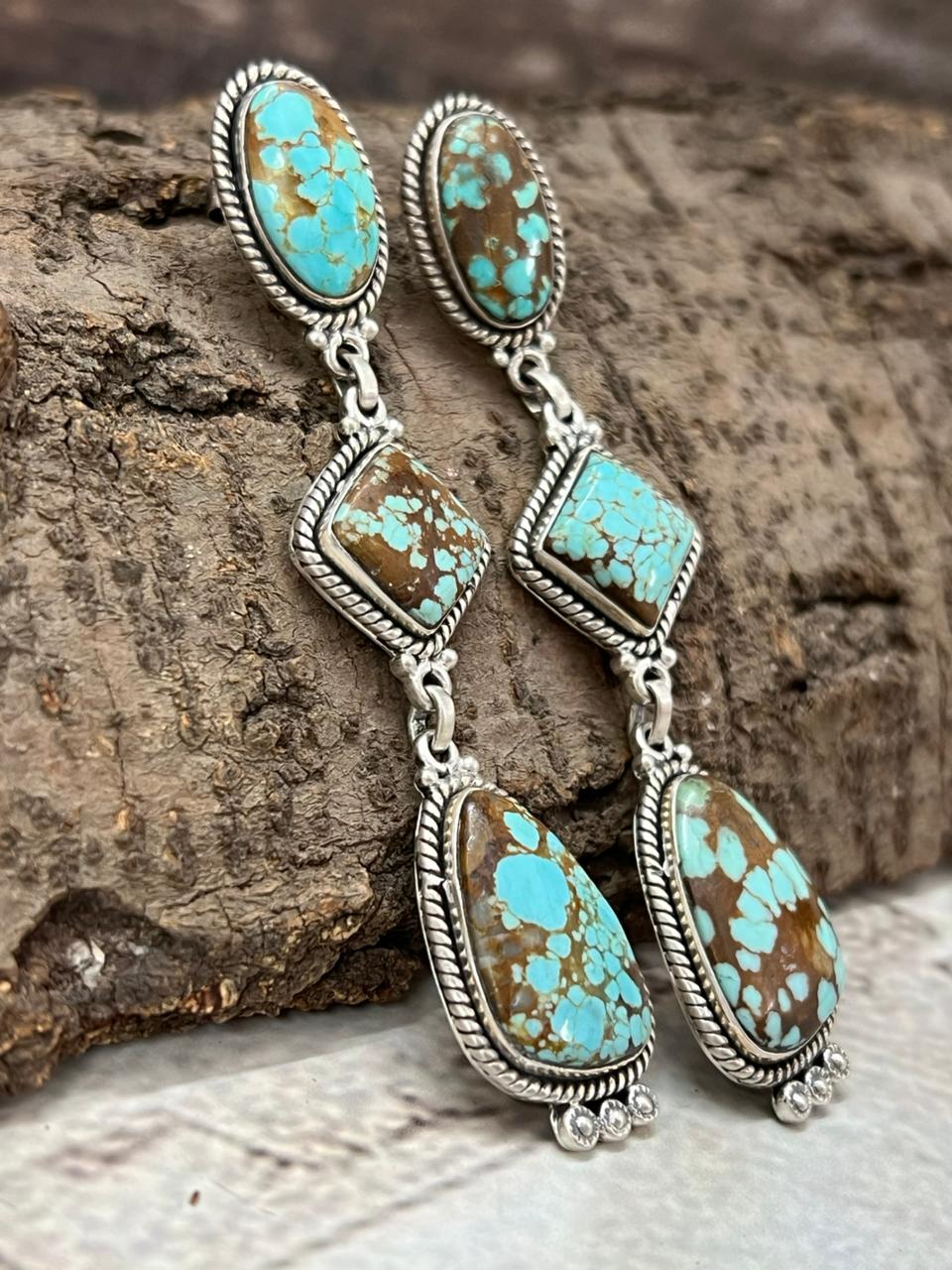 How gorgeous are these Handmade Natural Number 8 Turquoise Post Earrings!! These are lightweight and measuring 3" long 6/8" wide!