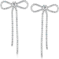 Silver Bow Earrings for Women - Long Silver Earrings for Women Silver Tone Bow Stud Earrings for Women Dangling Earrings for Women Sparkly Dangle Earrings Bow Earrings Silver Statement Earrings