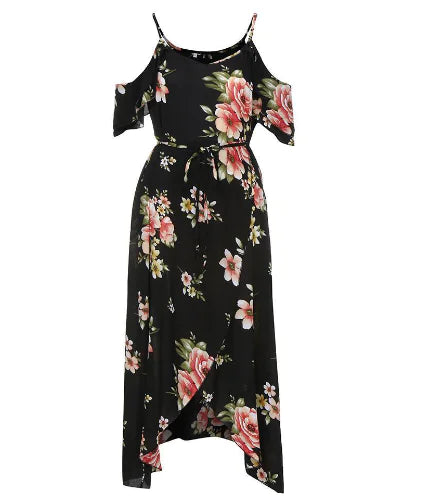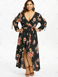 Step out in style with our plus-size long sleeve printed off-shoulder V-neck dress. Designed for the modern woman, this dress combines elegance with a laid-back vibe making it perfect for any casual occasion. The stunning black fabric features a beautiful print that adds a touch of uniqueness to your wardrobe.