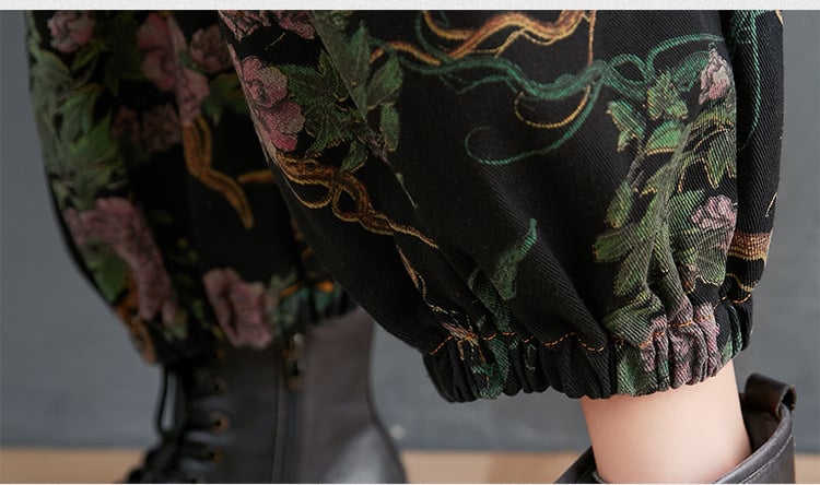 Made from high-quality denim with a beautiful flower pattern, these pants are not just fashionable but also incredibly comfortable. The fabric composition is carefully crafted with 71%-80% cotton, providing breathability and softness that you'll love. Available in a classic black color, they easily pair with any top in your wardrobe.