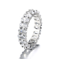 Overall, the 14 KT White Gold Plated Oval Cut Eternity Ring with Swarovski Crystals is a stunning and elegant piece of jewelry that is perfect for anyone who wants to add a touch of sophistication and glamour to their collection. With its sparkling crystals and timeless design, it is sure to be admired and cherished for years to come.