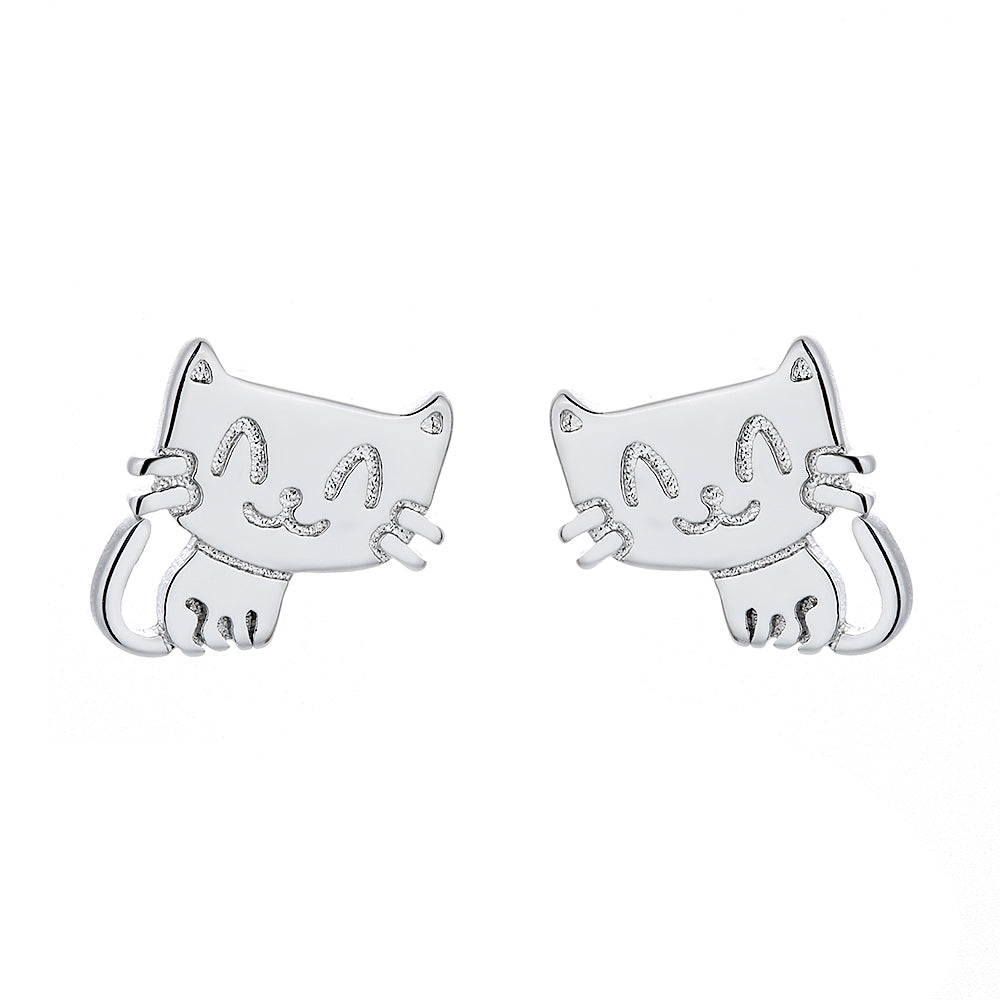 Show your love towards your furry friend with our Sterling Silver Cat Earrings. A beautiful piece of jewelry, this elegant cat is a symbol of playfulness and excitement. The minimalistic design and the butterfly closure will suit everyone's style. This delicate design features a one-of-a-kind design that is sure to draw attention to your beauty. These sterling silver earrings are built for longevity. Features metal plating or flashing, or electrocoating for a more lustrous appearance.