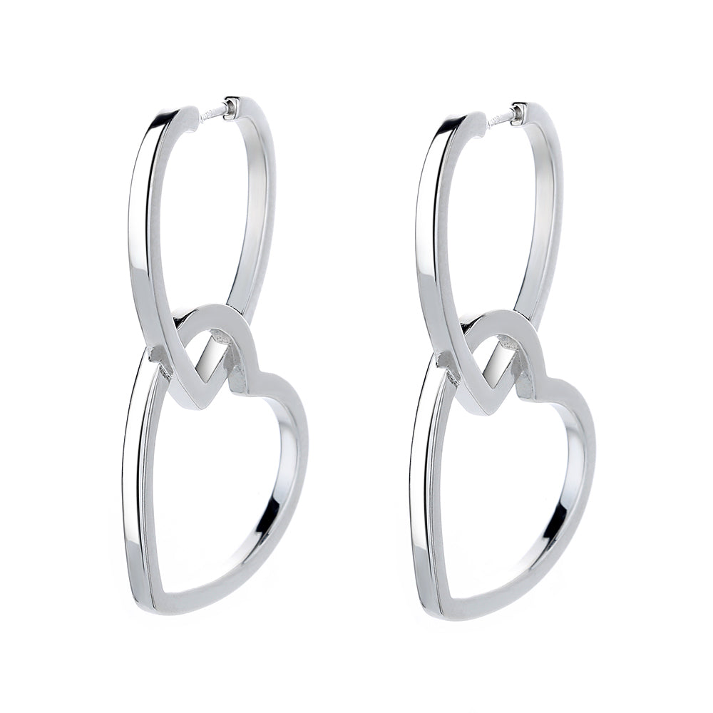 14K Gold and Sterling Silver or Gold Double Heart Drop Earrings - Silver / Sterling Silver
