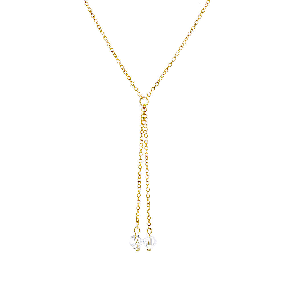 This stunning necklace is the perfect blend of elegance and sophistication. Crafted from durable brass and plated with 14K gold, it features a beautiful, created crystal that adds a touch of brilliance to the design. The necklace is treated to achieve a high-polished finish, ensuring a reflective shine that catches the light beautifully. Hypoallergenic, lead-free, and nickel-free, this necklace is designed for comfort and safety, even for sensitive skin. With an 18” length and a 6” drop, it’s the ideal piece for a graceful, refined look. The spring ring closure provides easy and secure wear, making this necklace a perfect gift for any woman.