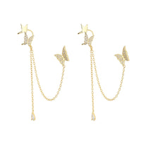 14K Gold Butterfly Cuff & Climber Drop Earrings with Genuine Crystals - Silver / Sterling Silver