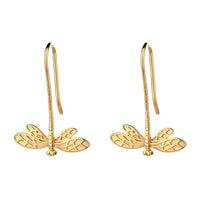 The dragonfly charm is intricately designed with detailed wings and a long slender body. The charm is made of 14K gold, which gives it a warm, rich glow and durability. The dragonfly dangles from the ear wire, creating a subtle movement that catches the light and adds a playful touch to the earrings.