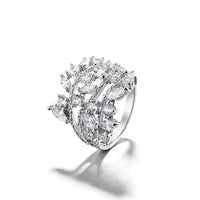 - Crafted from 14K White Gold Plated, this elegant ring features a stunning crystal leaf design.