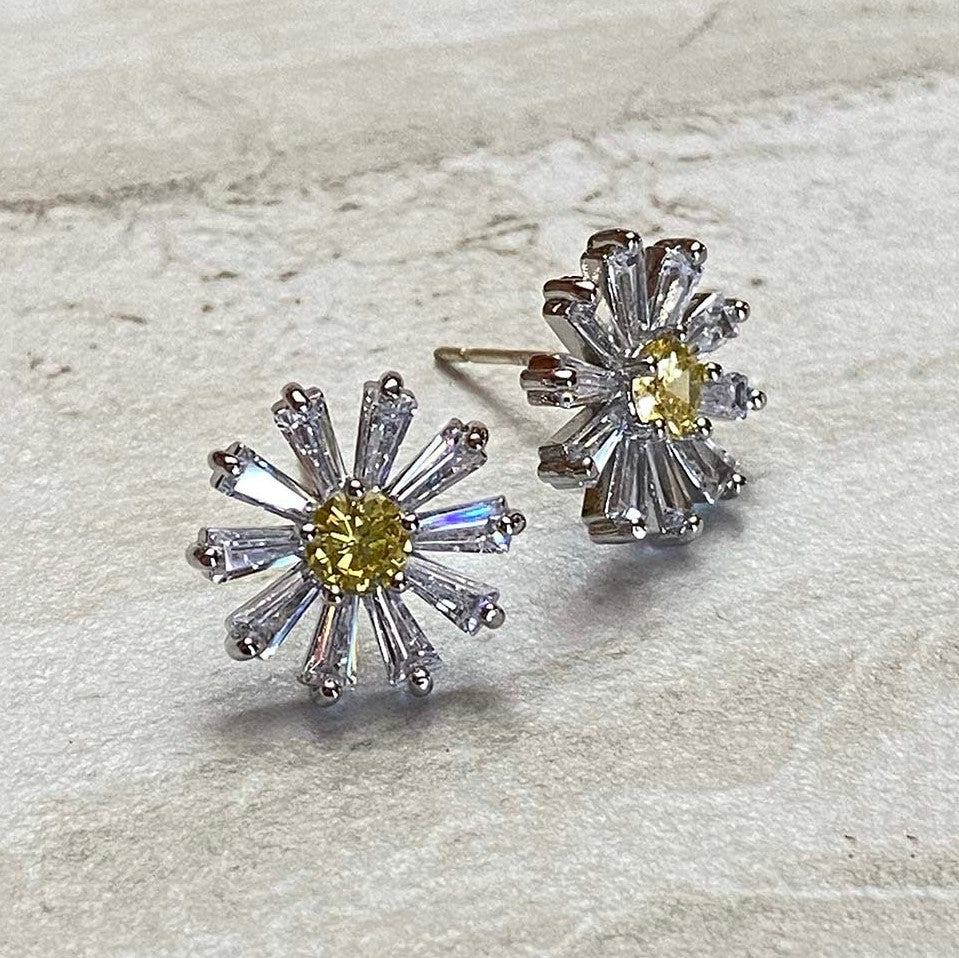 18K White Gold Citrine Daisy Earrings - Gold Plated Brass