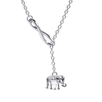 18K White Gold Infinity Elephant Lariat Pendant Necklace - 18K White Gold Plated