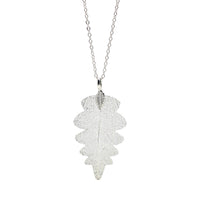 This 24" Handmade Natural Oak Leaf Pendant Necklace in White Gold is a beautiful and unique piece of jewelry that celebrates the beauty of nature. The pendant is meticulously crafted from a natural oak leaf that has been preserved and plated in white gold.
