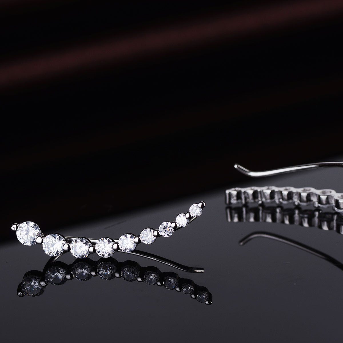 Elevate your ear game with these dazzling Amy & Annette 14K White Gold Plated Earring Crawlers. Designed to gracefully climb the ear, each piece sparkles with precision-set crystals that catch the light from every angle. Lightweight yet statement-making, these trendy climber earrings combine elegance with modern edge, perfect for adding a touch of shine to day or night looks. Whether styled solo or paired with studs, they bring instant glamour to any outfit. A must-have for jewelry lovers who crave both fashion and versatility, these crystal crawlers are chic, stylish, and perfect for gifting.