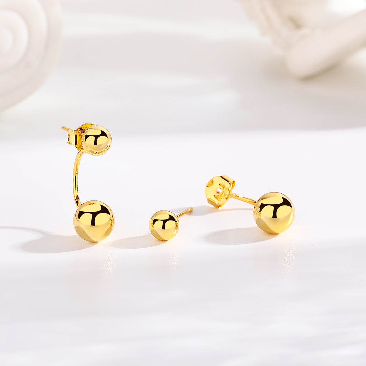 Who says you have to choose between style and substance when you shop? Our elegant Sterling Silver and 14K Gold Plated Front to Back Ball Earrings are lightweight and easy to wear, and they look great whether you're running errands or heading to the office. You’ll feel the elegance and style when wearing this piece. These Sterling Silver and 14K Gold Plated Front to Back Ball Earrings are made of 925 sterling silver and 14k gold plating , nickel, and lead-free, sparing any allergic material. The hypoallergenic ball design is perfect for those sensitive ears. Each piece of jewelry is exquisitely handcrafted and polished by our most skilled masters.