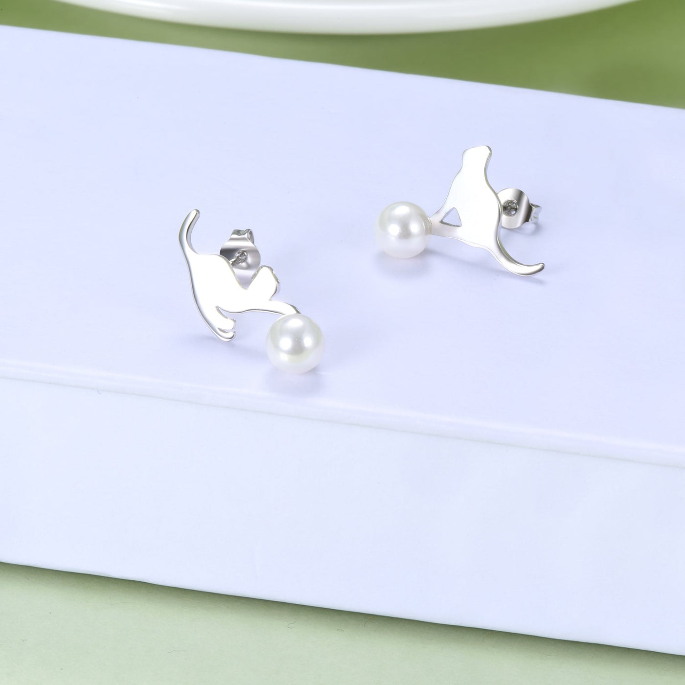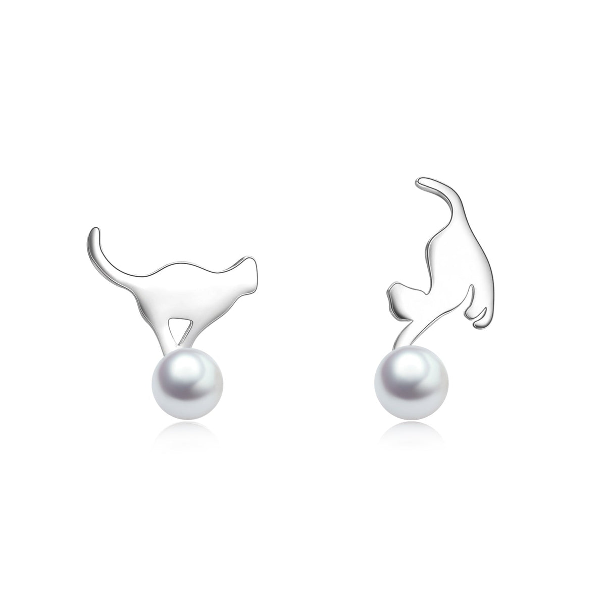 Feel extra special wearing these earrings! Our Sterling Silver Cultured Pearl Cat Earrings will make a perfect gift for any pet lover. The studs feature an exquisite cat image, with its stretched-out body, playful soul and a royal cultured pearl that shines bright. Its minimalist design adds to the beauty of this elegant piece of art, The cat earrings will give your outfit that extra oomph factor!
