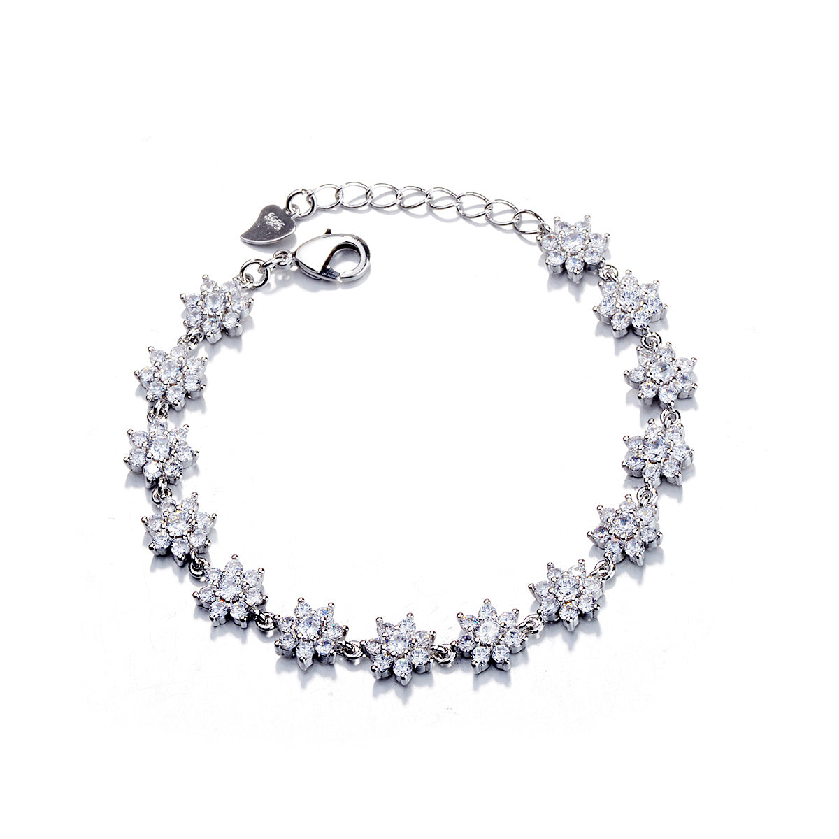 Genuine Crystal Sterling Silver Flower Bracelet - Silver / Sterling Silver