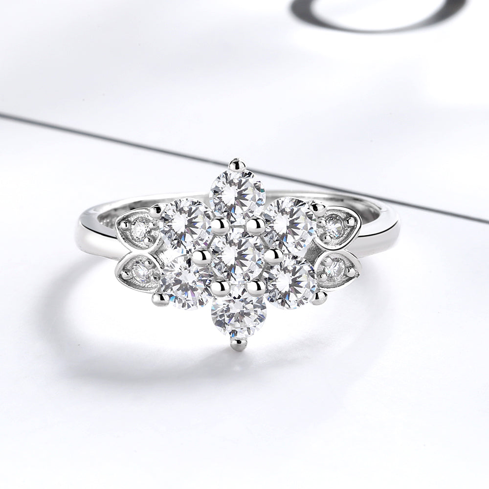 The ring is perfect for those who love floral-inspired jewelry, and it's versatile enough to be worn for any occasion. Whether you want to wear it with a casual outfit for a touch of sparkle or dress it up for a formal event, this ring is sure to add a touch of glamour to your look.
