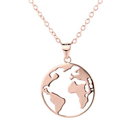 The Sterling Silver and Rose Gold World Pendant Necklaces are a beautiful and meaningful piece of jewelry that feature a unique design. These necklaces are made of high-quality sterling silver and rose gold, two durable and versatile metals that complement each other beautifully.