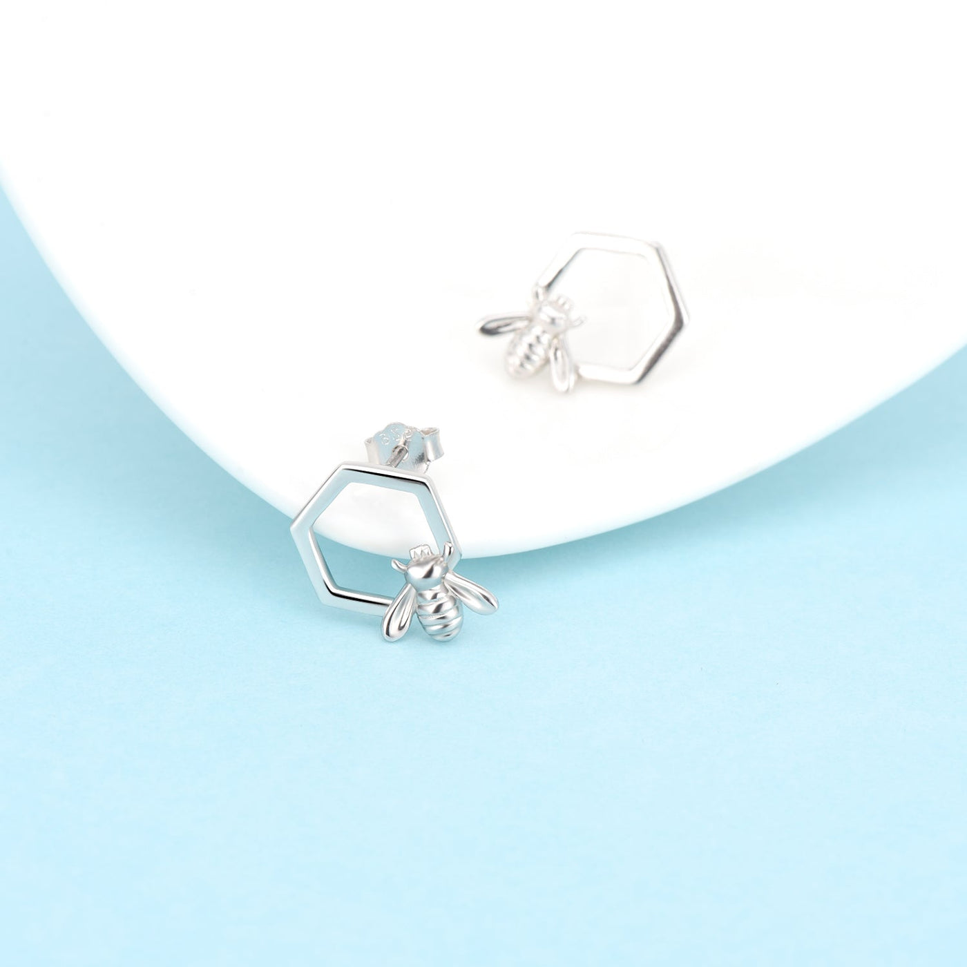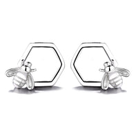 Sterling Silver Bee and Honeycomb Stud Earring - Sterling Silver