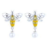 Sterling Silver Bee Earrings With Swarovski Crystals and Pearl - Swarovski Pearl / Sterling Silver