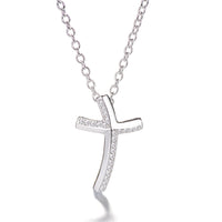 Sterling Silver & Cubic Zirconia Cross Necklace - Sterling Silver