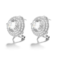The Sterling Silver Double Halo Omega Stud Earrings with Swarovski Crystals are a dazzling and luxurious accessory that is sure to turn heads. These earrings are made of high-quality sterling silver, which gives them a lustrous, shiny finish that is both durable and long-lasting.