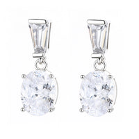 Sterling Silver Emerald and Oval Drop Earrings With Swarovski Crystals - Sterling Silver