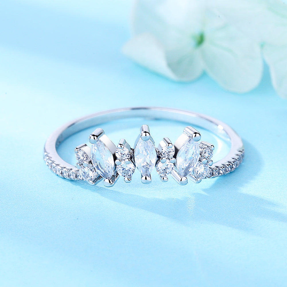 Sterling Silver Eternity Marquise-cut Crown Ring with Crystals - 6 / Sterling Silver