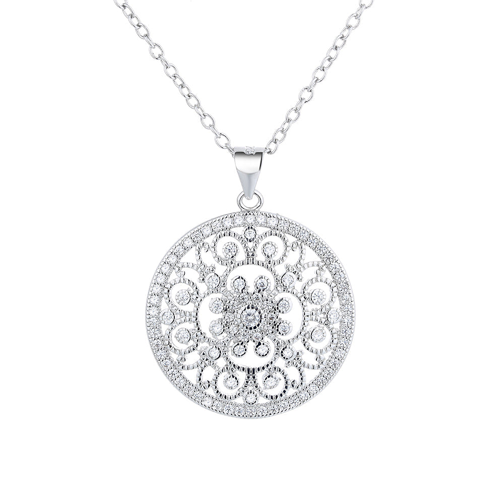 Sterling Silver Filigree Pendant Necklace with crystals from Swarovski - Sterling Silver