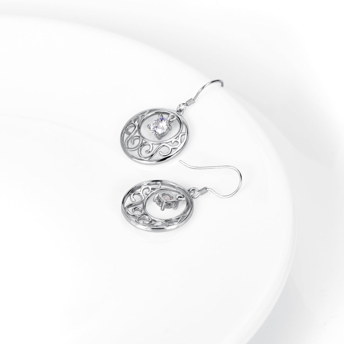 The Sterling Silver Filigree Round Drop Earrings with White Topaz are a beautiful and delicate pair of earrings that feature intricate filigree work and sparkling white topaz gemstones. The earrings are made from high-quality sterling silver and have a classic drop design.