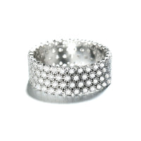 The Sterling Silver Four Row Eternity Ring with crystals from Swarovski is a stunning piece of jewelry that is sure to catch the eye. The ring is crafted from high-quality sterling silver, which is known for its durability and shine. It features four rows of sparkling crystals from Swarovski, which are arranged in an eternity style, symbolizing an everlasting bond.