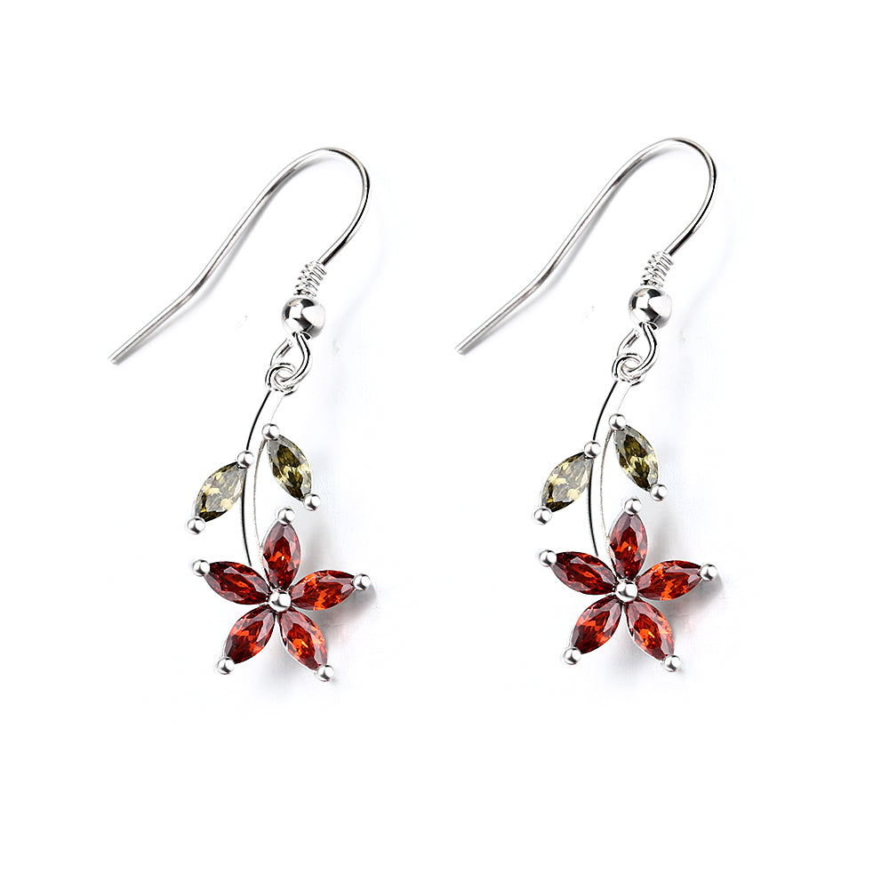 If you're looking for the perfect gift for yourself or someone else, Our Sterling Silver Garnet and Peridot Floral Drop Earrings are an easy choice. These sterling silver earrings have a colorful depiction of floral liveliness. Wear them casually and they'll get noticed by all your friends, or go more formal with a more conservative outfit and they'll still get compliments. Features hook closure to ensure comfort, lightweight enough, they won’t weigh down your ears.