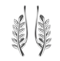 In summary, the Sterling Silver High Polish Leaf Crawlers are a stylish and trendy earring design that features delicate leaf shapes crafted from high-quality sterling silver. The unique curved shape of the crawlers makes them stand out, and the high polish finish enhances the intricate details of the leaves. They are versatile and comfortable to wear, making them a great choice for any occasion.
