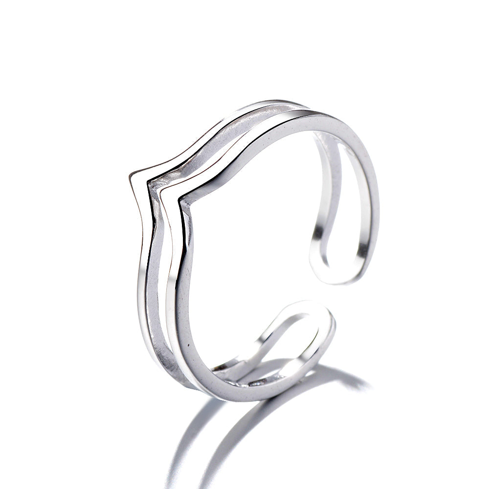 Amy and Annette 14K White Gold Minimalist 2 Row Bypass Ring - 14K White Gold Plated