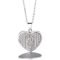 The Mother Mary image is intricately designed and delicately engraved on the heart pendant, capturing the beauty and reverence of this beloved religious figure. The sterling silver adds to the pendant's overall beauty and elegance, giving it a timeless and classic feel.