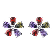 Sterling Silver Multi-Gemstone Floral Stud Earrings - Ruby / Peridot / Amethyst