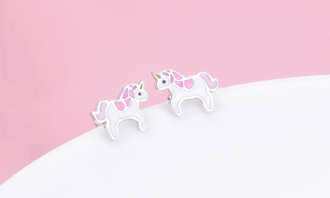 Overall, these Sterling Silver Pink and White Unicorn Stud Earrings are a playful and stylish accessory that will bring a touch of magic to any outfit. They are perfect for anyone who loves unicorns or for anyone who wants to add a touch of whimsy to their everyday look.