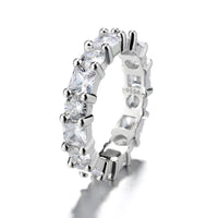 The Sterling Silver Round & Square Eternity Ring with crystals from Swarovski is a stunning piece of jewelry that features a beautiful combination of round and square-cut crystals set in a high-quality sterling silver band. The crystals are sourced from Swarovski, a world-renowned brand known for its precision-cut and high-quality crystals.