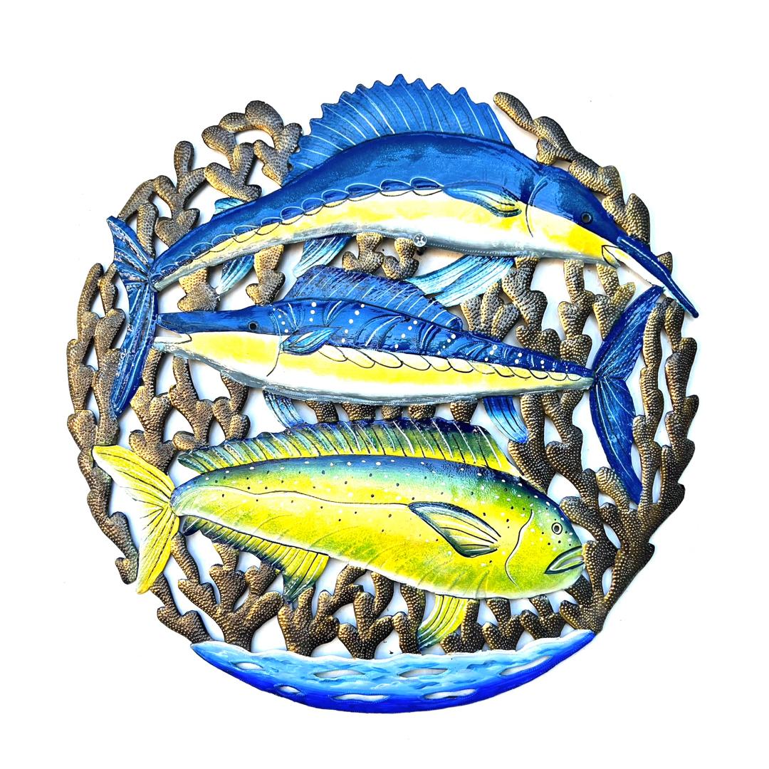 One of the most celebrated Haitian art forms, steel drum art is always a winner! Each piece is hand crafted from recycled 55 gallon drums using only a hammer and a few small tools that resemble railroad spikes. Each piece is a true work of art!
