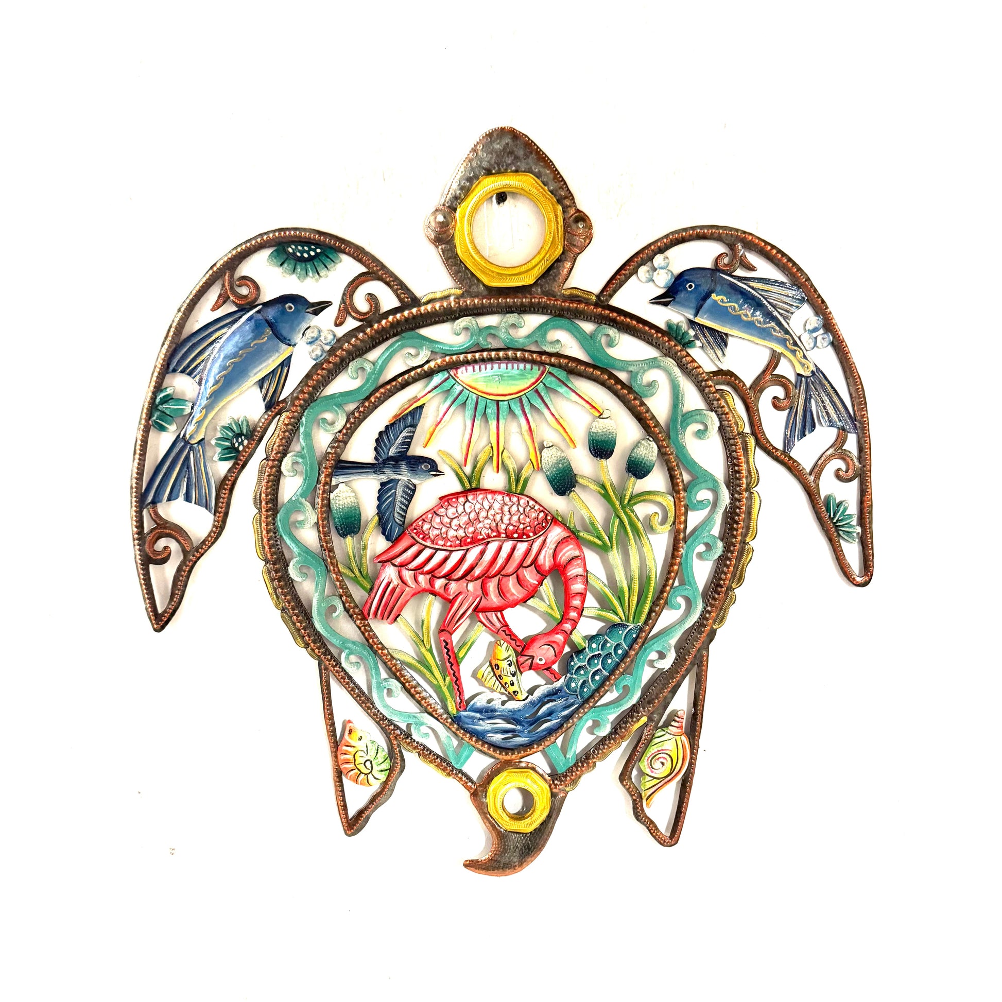 One of the most celebrated Haitian art forms, steel drum art is always a winner! Each piece is handcrafted from recycled 55-gallon drums using only a hammer and a few small tools that resemble railroad spikes. Each piece is a true work of art!